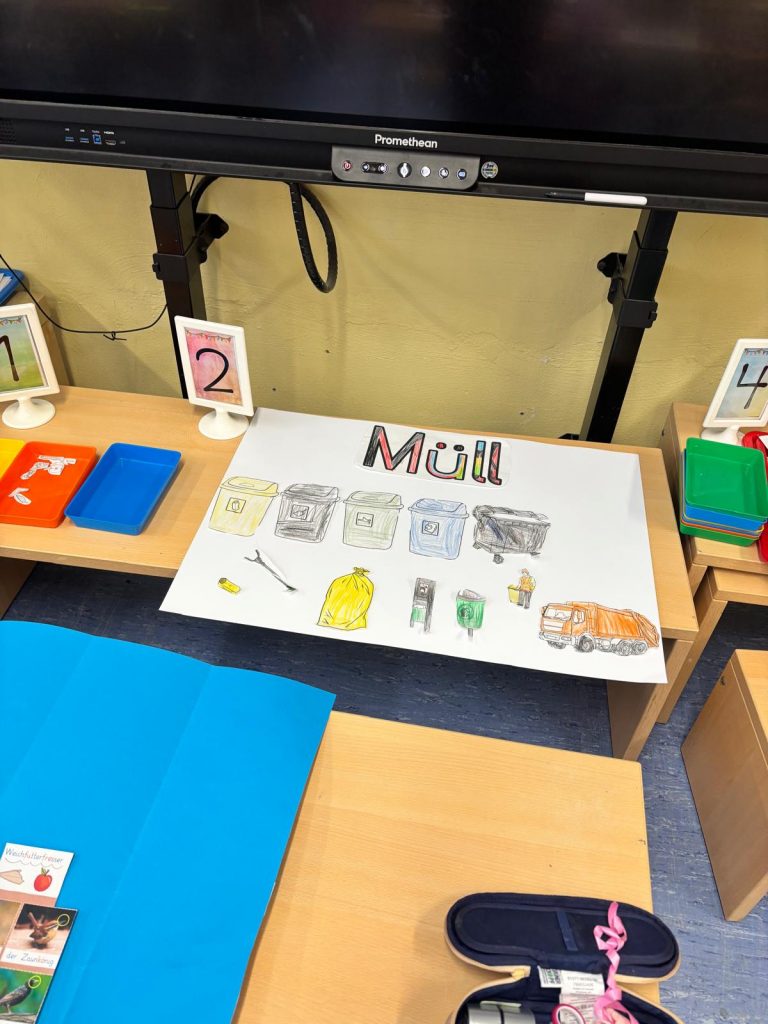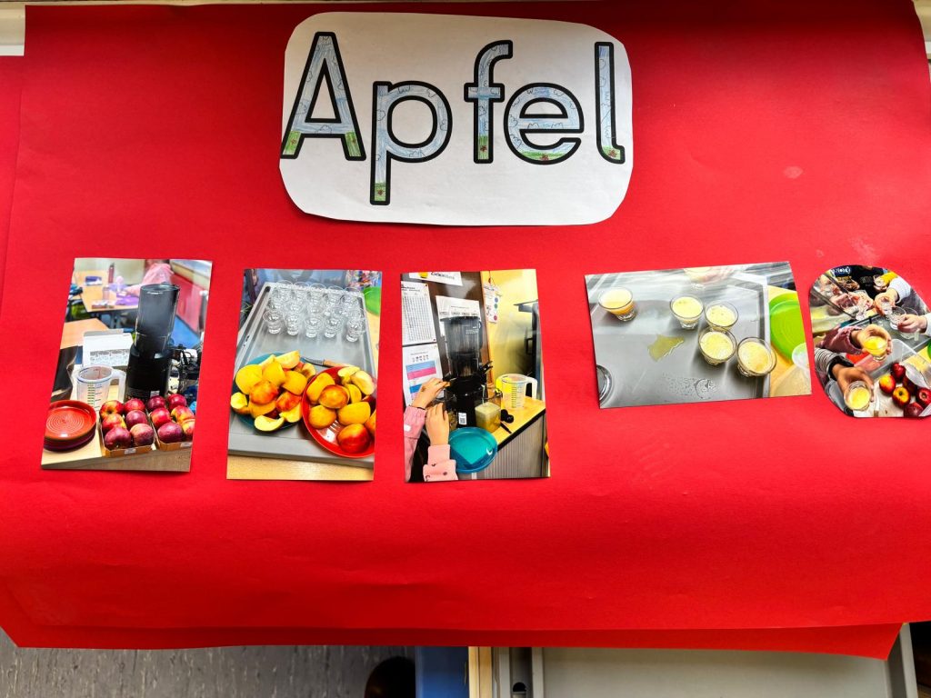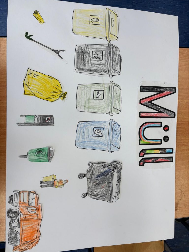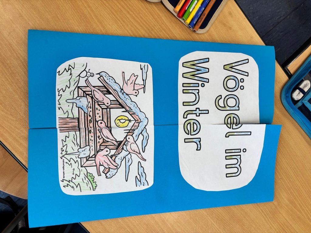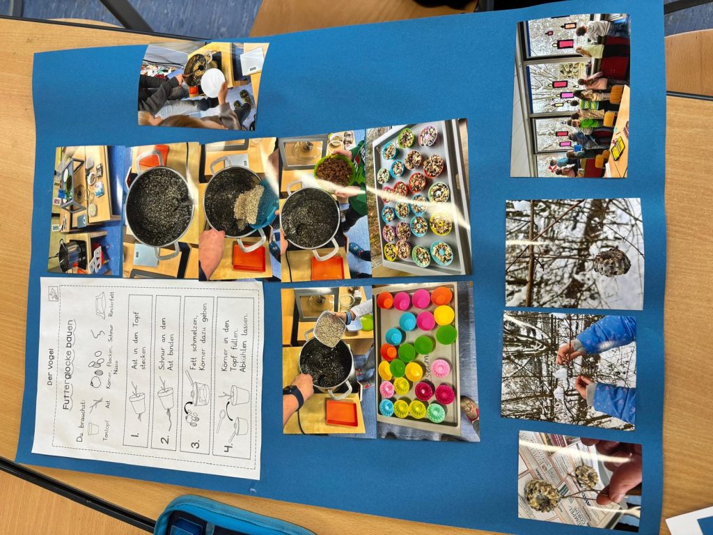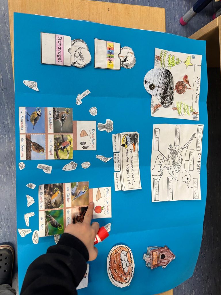 Es sind Plakate zum Apfelsaft pressen, zum Thema Müll und zu Vögel m Winter entstanden.
