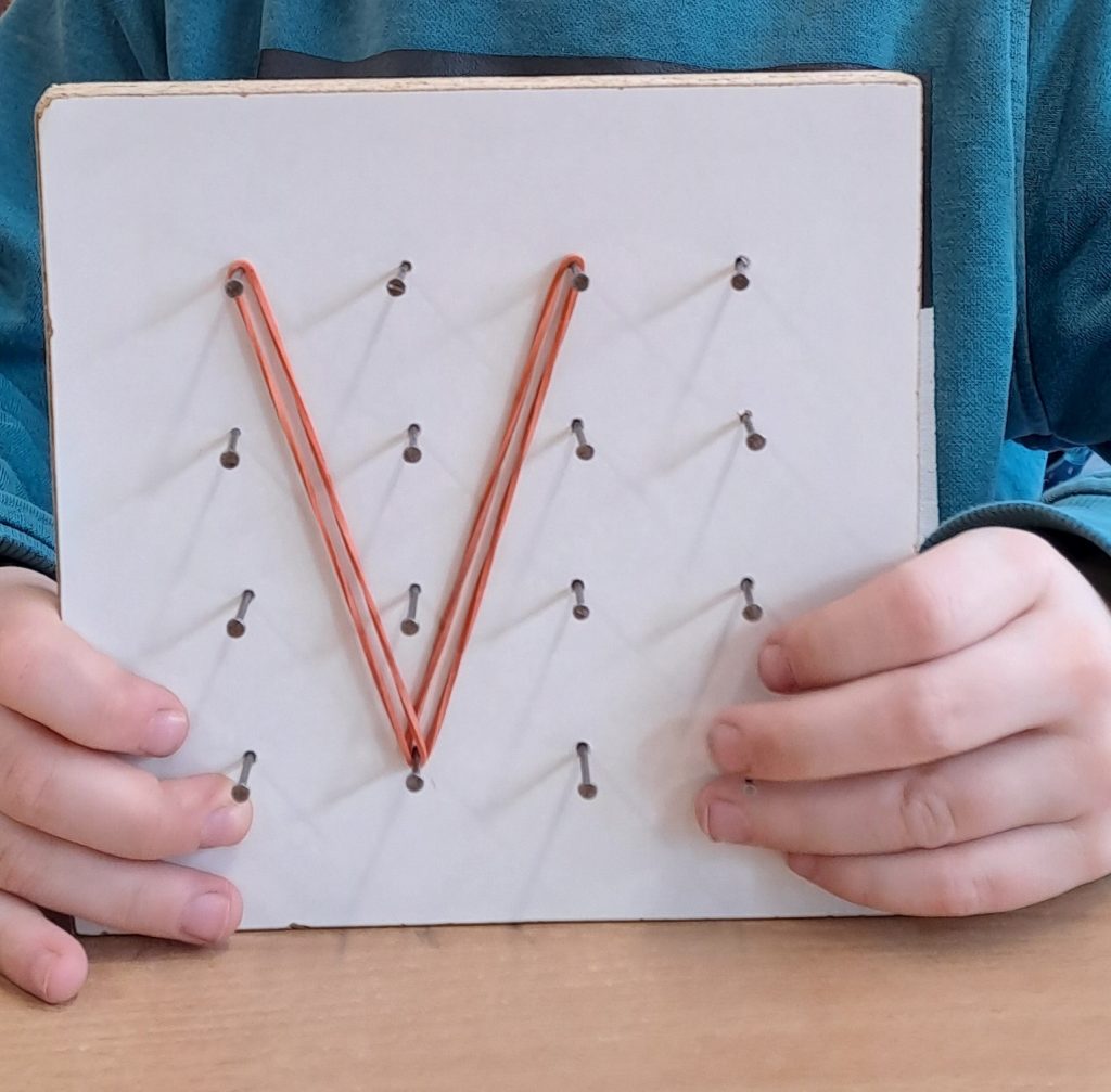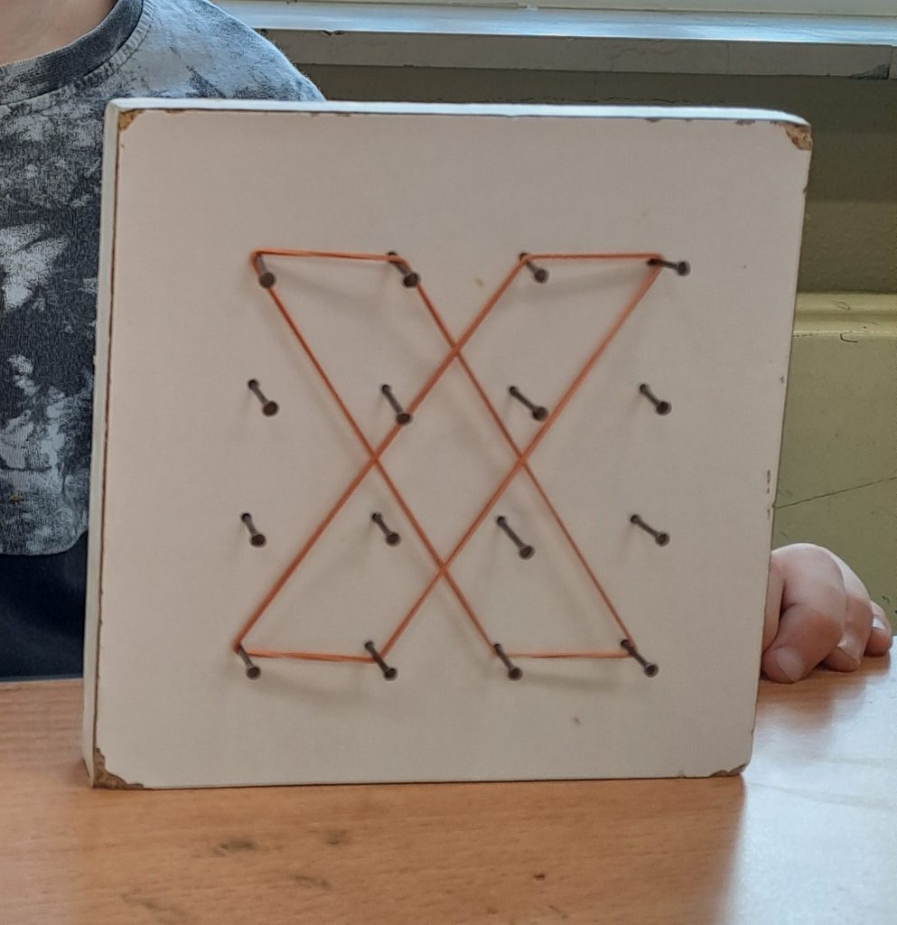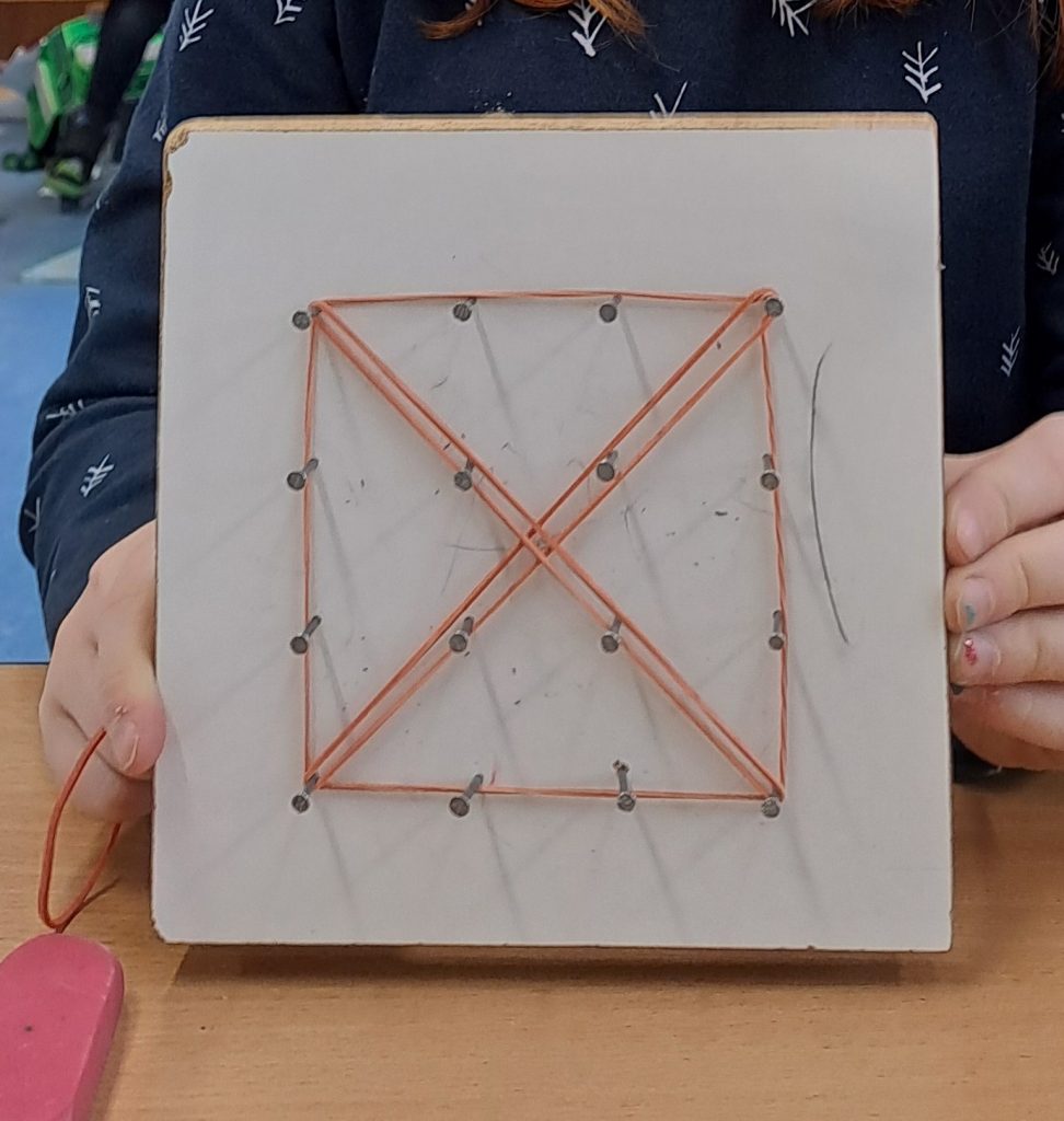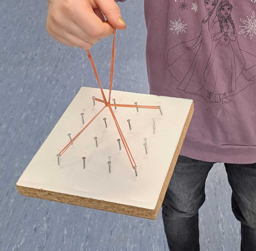 Die Schüler*innen der Klasse 1c durften mit Geobrettern experimentieren und konnten geometrische Muster ausprobieren. Manche davon wurden dann sogar in 3D-Modelle verwandelt.