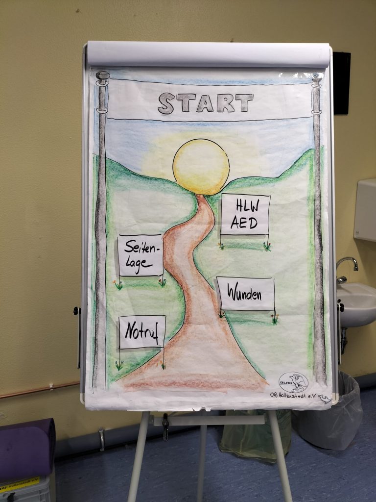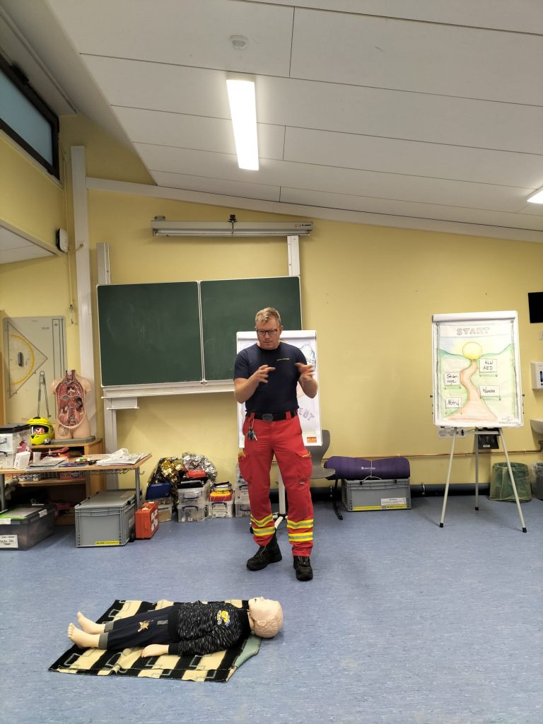 In dieser Woche werden die Viertklässler*innen zu Herzensretter*innen ausgebildet. Stefan Schneider vom DLRG leitet vier Tage lang die Erste Hilfe Kurs für Kinder an der Glockenbergschule. Wie in jedem Erste Hilfe Kurs geht es auch hier um die Abläufe, die optimalerweise am Unfallort oder anderen medizinischen Notfällen eingehalten werden sollten. Es geht aber auch um die kleinen Wunden, Fürsorge und das Abbauen von Berührungsängsten mit kleinen Verletzungen des Alltags.