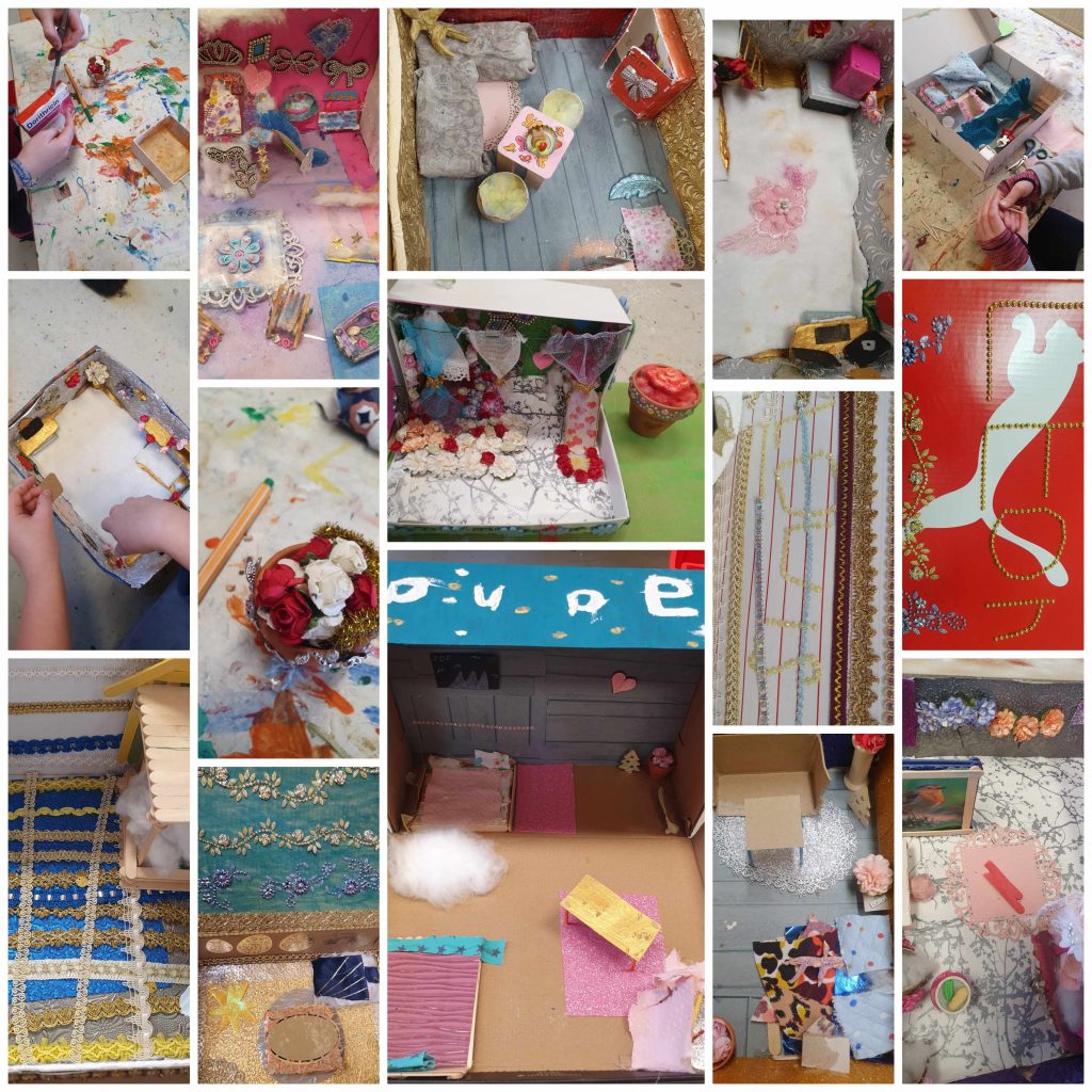 Nun ist es aber so, dass die Kinder weiterhin alle um die 140 cm groß sind und weiterhin in ihren echten Betten schlafen. Ihr Modell von ihrem Zimmer können sie nur anschauen und voller Stolz zeigen. Alle Schüler*innen haben fleißig und sehr kreativ an ihren Werken gearbeitet. Wer genau hinschaut, kann viele Details entdecken.