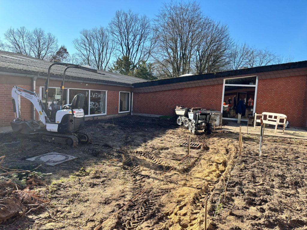 Im Schulgarten tut sich was: Mit Bagger und „motorisierten Schubkarren“ wird ein toller Untergrund für die neuen Beete geschaffen, in denen die Klassen zukünftig wirtschaften können.