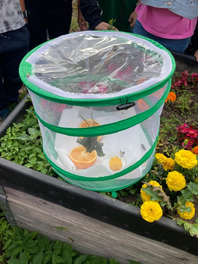 Am Montag konnten die Kinder der 2b die ersten geschlüpften Tagpfauenaugen freilassen. Das schönste war, dass sich eine Raupe direkt in der Mathestunde verpuppt hat – was für ein Erlebnis.
