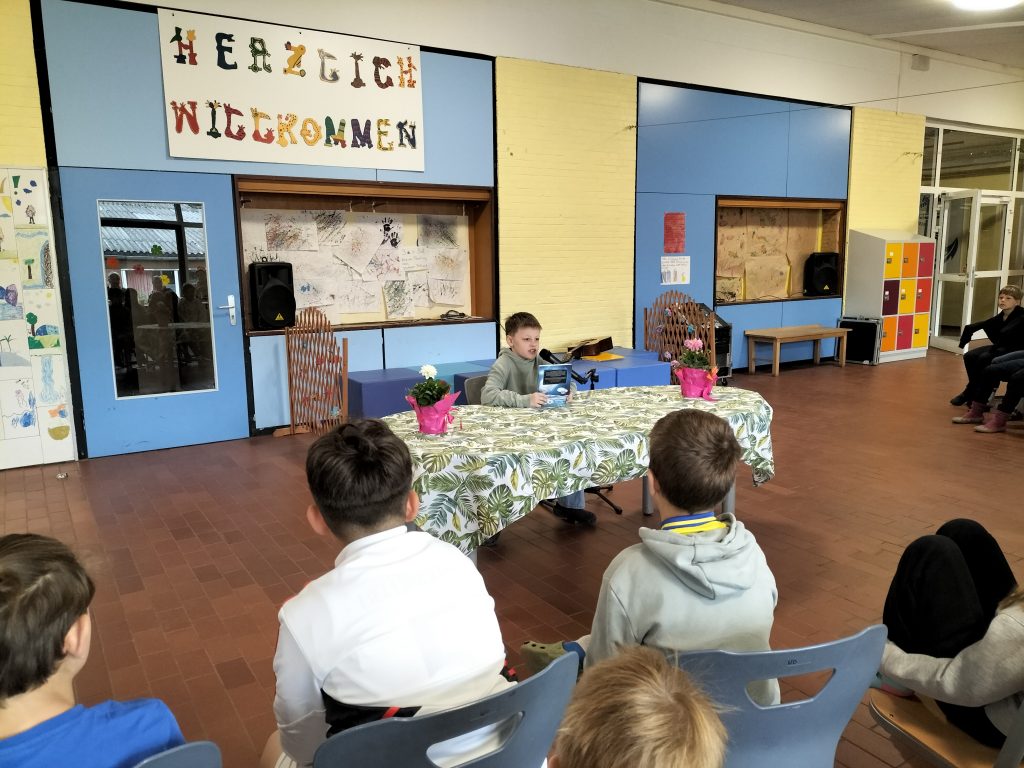 Der Vorlesewettbewerb ist jedes Jahr an eine Buchpräsentation im Klassenverband gebunden. Alle Kinder lesen dafür zuhause ein Buch ihrer Wahl und präsentieren dieses kriterienorientiert den Mitschüler*innen im Deutschunterricht. Die Kriterien und Präsentationsformen variieren in den Jahrgangsstufen von einem Steckbrief, über ein Plakat bis hin zu der Erstellung eines Lapbooks. Dabei sind der Kreativität, der Fantasie und der Leselust keine Grenzen gesetzt.